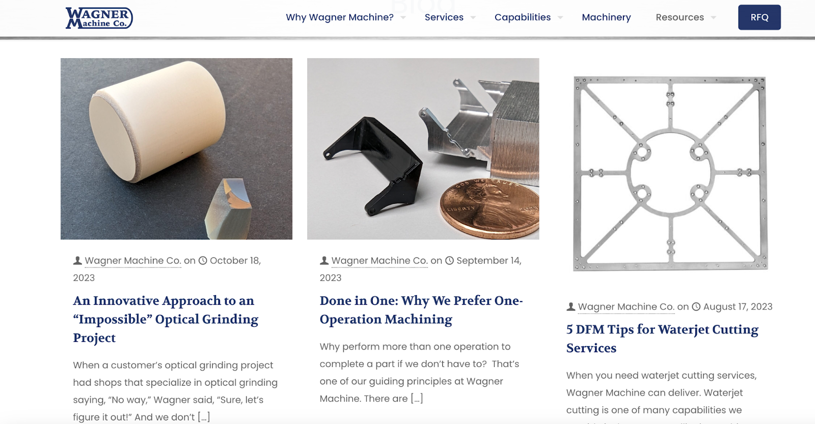 Wagner Machine’s blog is updated with fresh new content every month. The ideas come from Kurt, but the long-form content is written and published by Paperless Parts.